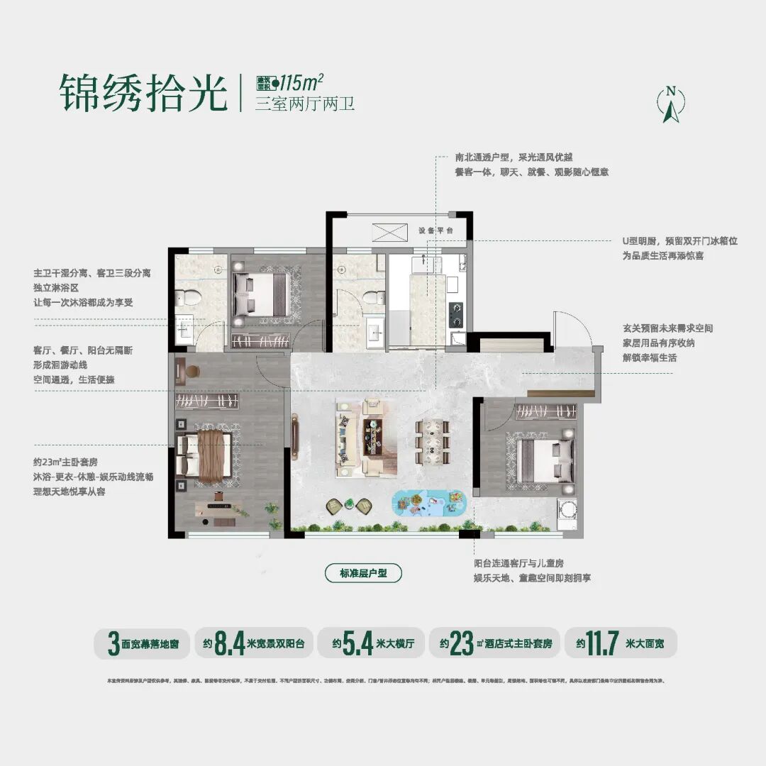 约115㎡阔境三室: