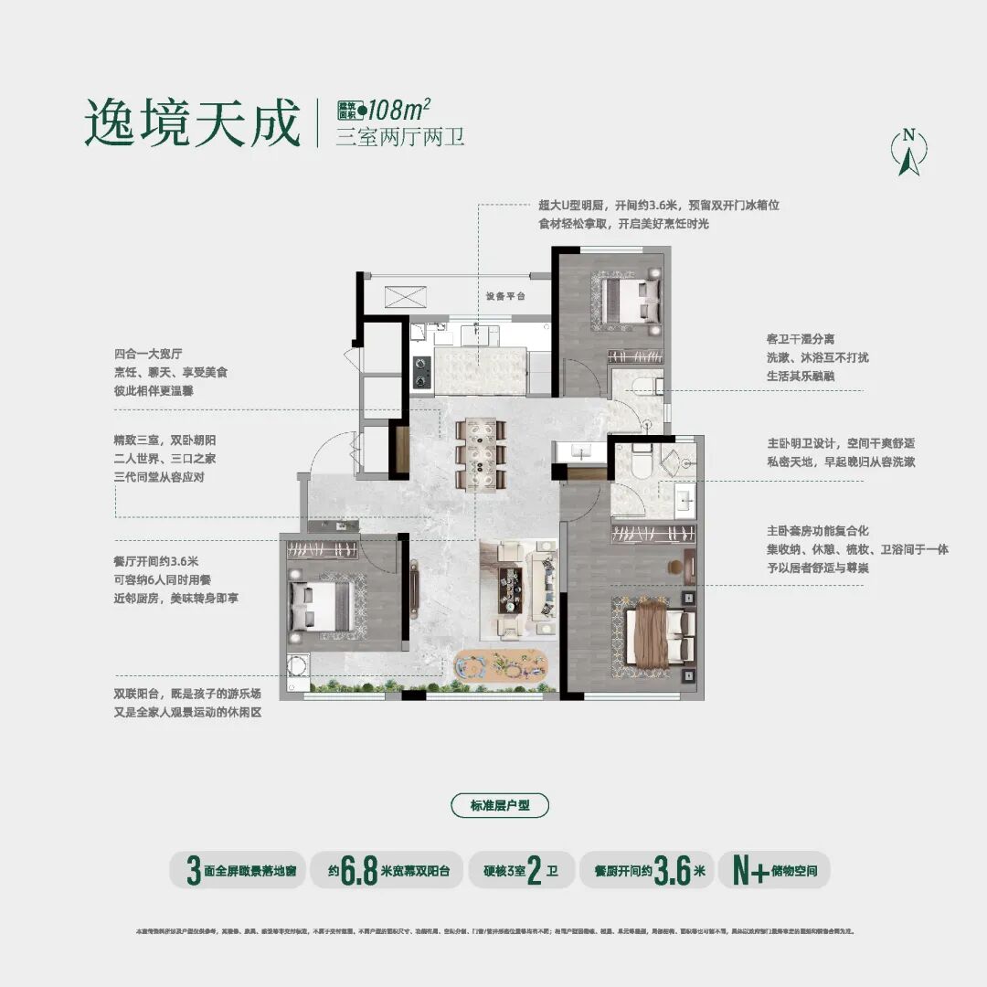 真正的好户型,绝非空间的简单堆砌,而是对生活痛点的精准回应与化解。海通·芳华悦府深谙于此,重磅加推3# 楼阔景楼座。该楼座傲踞社区优越位置,以奢阔楼间距实现疏朗有致的空间布局,有效保障采光通风与开阔视野。居于此,推窗即揽四季园林盛景,阳光清风自由流淌,为日常生活注入更多明媚与惬意。在此基础上,项目以建面约108㎡与115㎡两大爆款户型,诠释舒居真谛,成为城市置业者的理想之选。