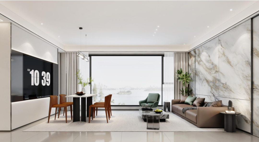 解决方案:约11.7米南向面宽+三面瞰景落地窗,让阳光与风景成为生活底色